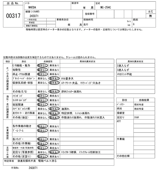 Статус negotiate sold Лот 317 Аукцион ARAI Kenki Дата аукциона 04.11.2025