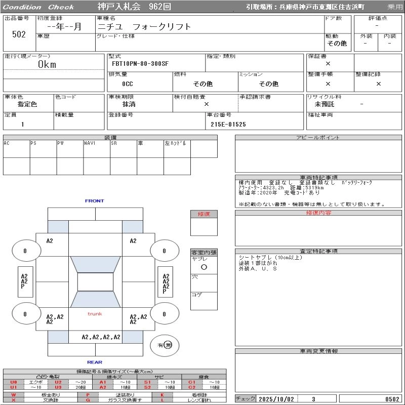 Статус выставлен на аукцион Лот 502 Аукцион ORIX Kobe Дата аукциона 21.10.2025