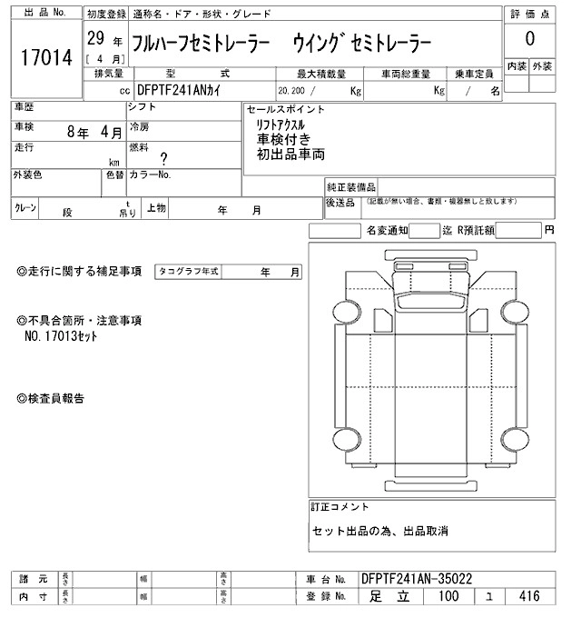 Год выпуска2017 КузовDFPTF241AN Комплектация SEMI TRAILLER NO.17013 SET