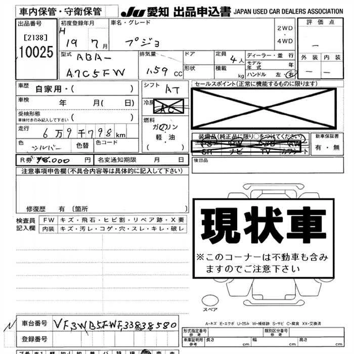 Статус выставлен на аукцион Лот 10025 Аукцион JU Aichi Дата аукциона 11.12.2025