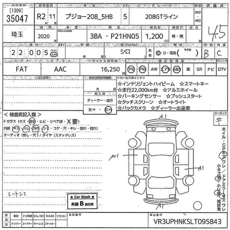 Год выпуска2020 Пробег 22 000 км КузовP21HN05 Комплектация208GT LINE