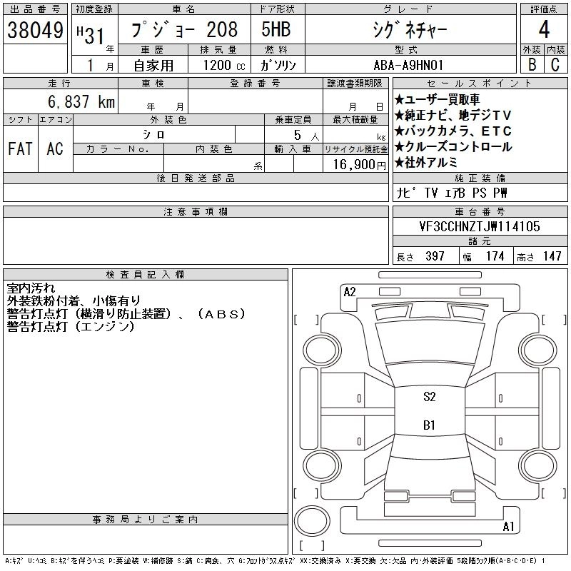PEUGEOT 208 2019 г., лот № 38049