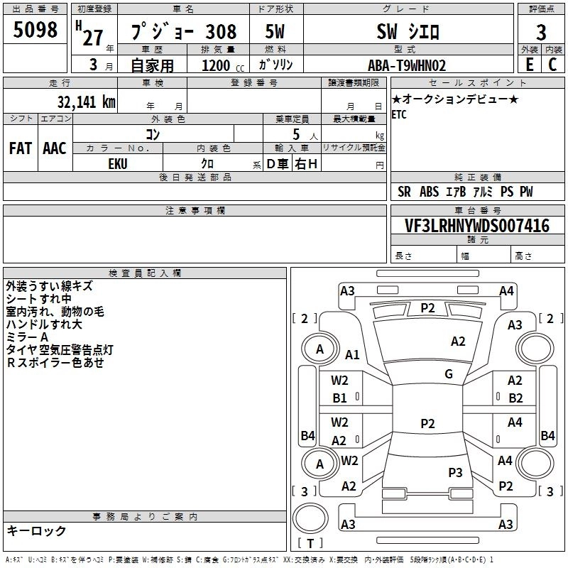 PEUGEOT 308 2015 г., лот № 5098