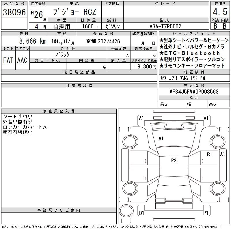 PEUGEOT RCZ 2014 г., лот № 38096