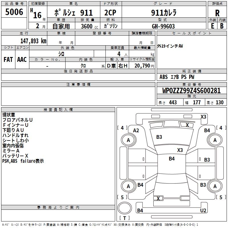 PORSCHE 911 2004 г., лот № 5006