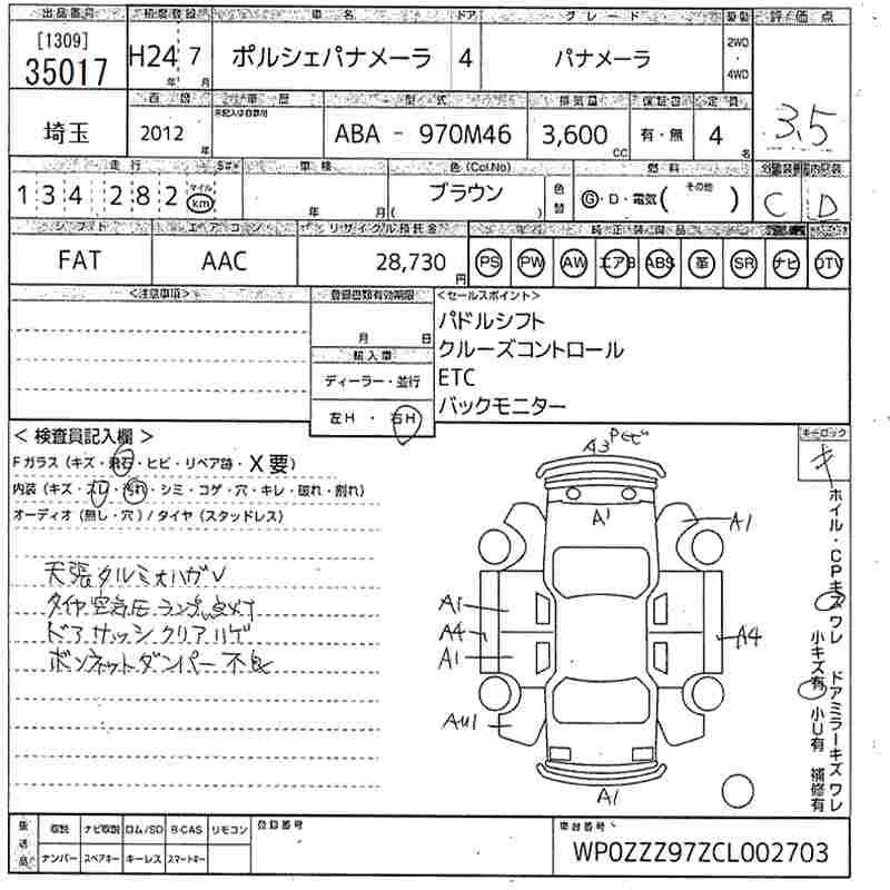 PORSCHE PANAMERA 2012 г., лот № 35017
