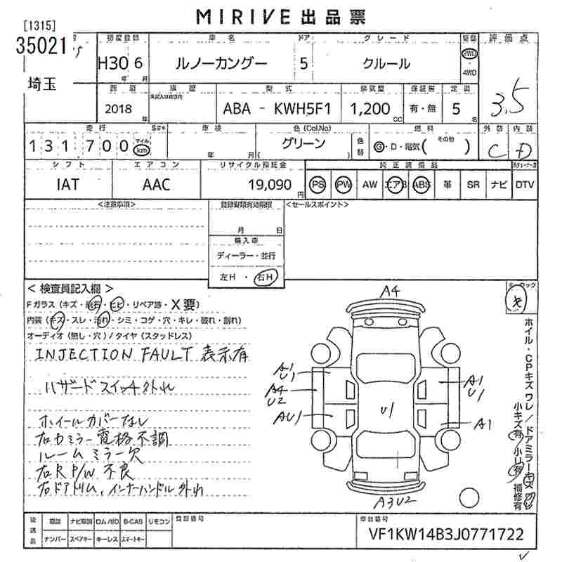 RENAULT KANGOO 2018 г., лот № 35021
