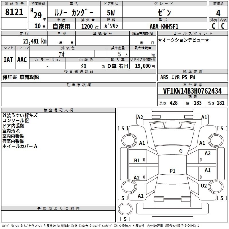 RENAULT KANGOO 2017 г., лот № 8121
