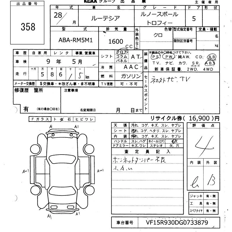 RENAULT LUTECIA 2016 г., лот № 358