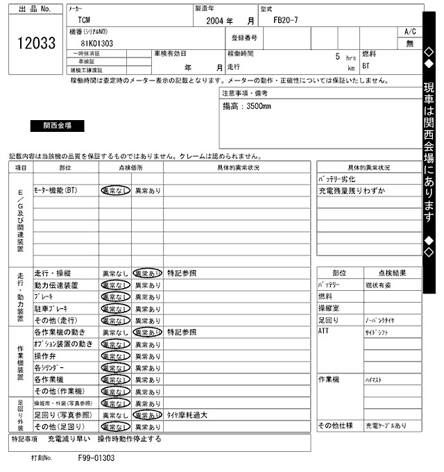Год выпуска2004 КузовFB20-7 Комплектация BATTERY SI YELLOW FORKLIFT