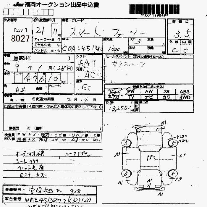 Статус продан Лот 8027 Аукцион JU Fukuoka Дата аукциона 23.01.2026
