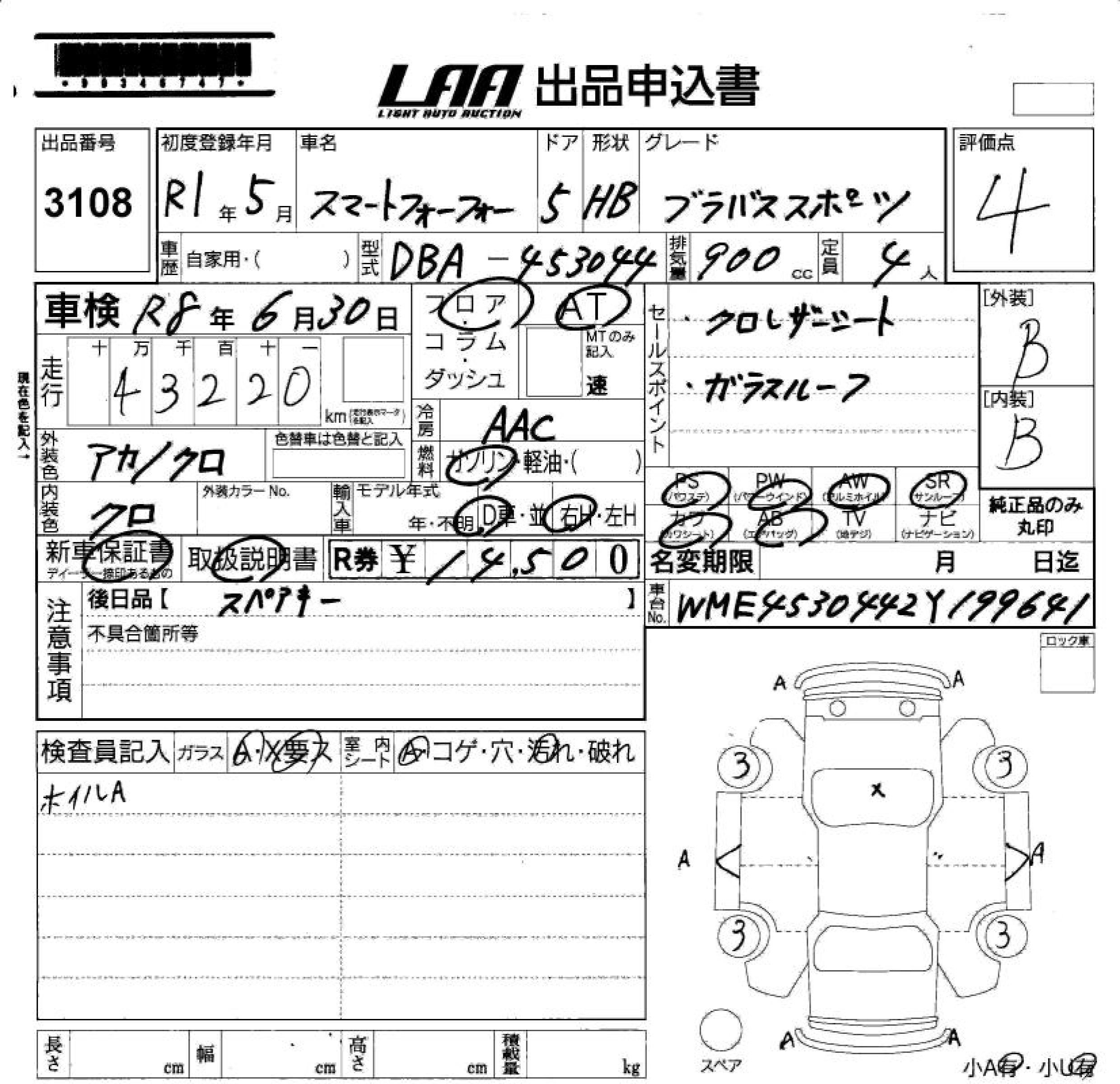Статус не продан Лот 3108 Аукцион LAA Okayama Дата аукциона 23.01.2026