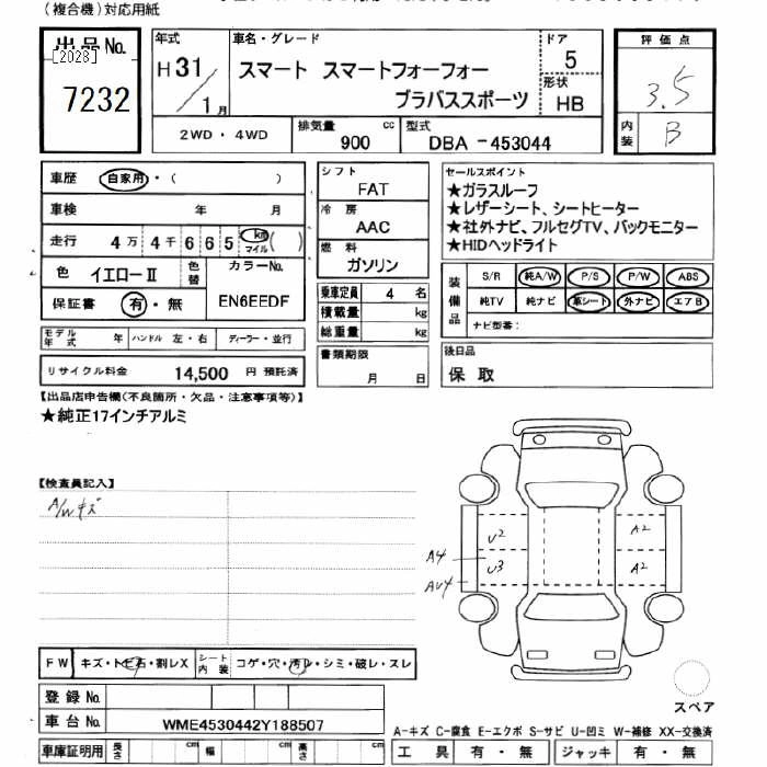 SMART FOURFOUR 2019 г., лот № 7232