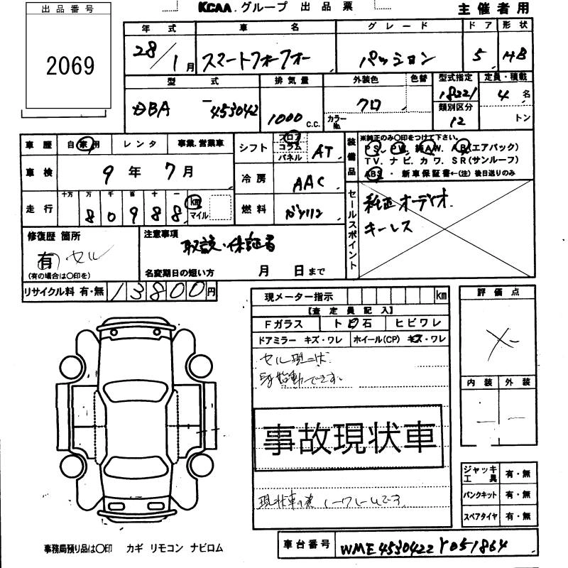 SMART FOURFOUR 2016 г., лот № 2069