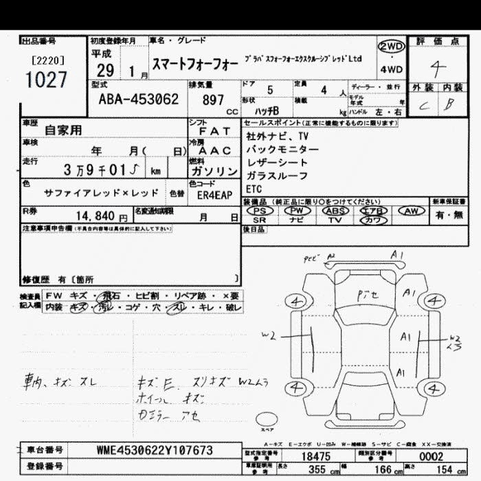 SMART FOURFOUR 2017 г., лот № 1027