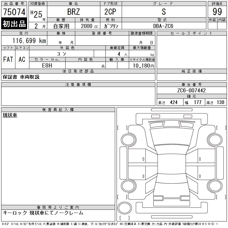 SUBARU BRZ 2013 г., лот № 75074