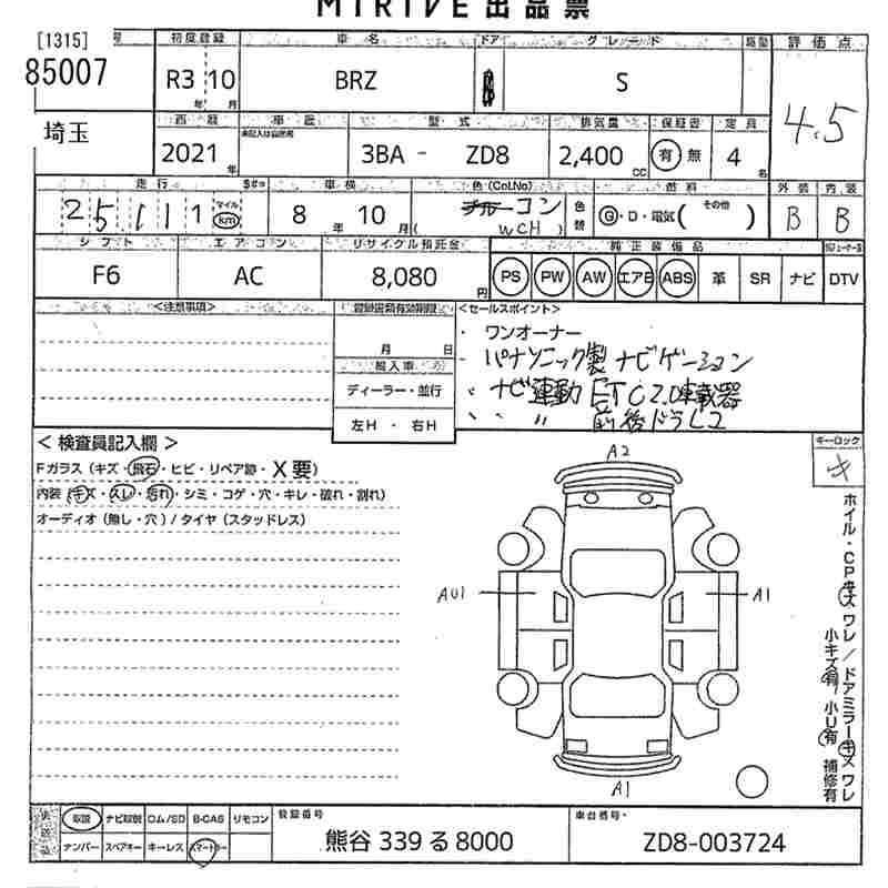 Статус выставлен на аукцион Лот 85007 Аукцион MIRIVE Saitama Дата аукциона 28.01.2026