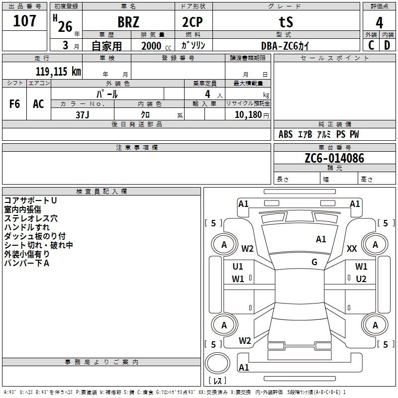 SUBARU BRZ 2014 г., лот № 107