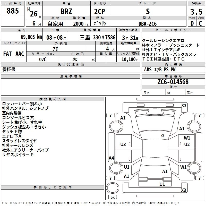 SUBARU BRZ 2014 г., лот № 885