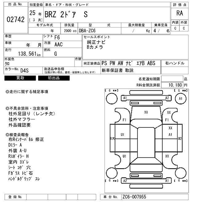 SUBARU BRZ 2013 г., лот № 2742