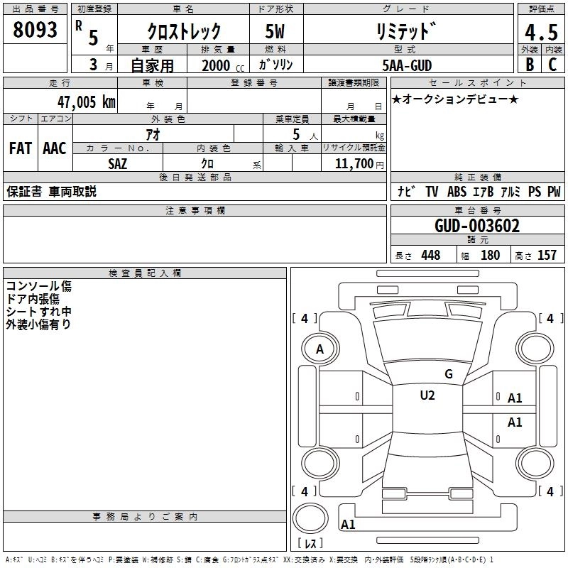 Статус выставлен на аукцион Лот 8093 Аукцион TAA Chubu Дата аукциона 12.03.2026