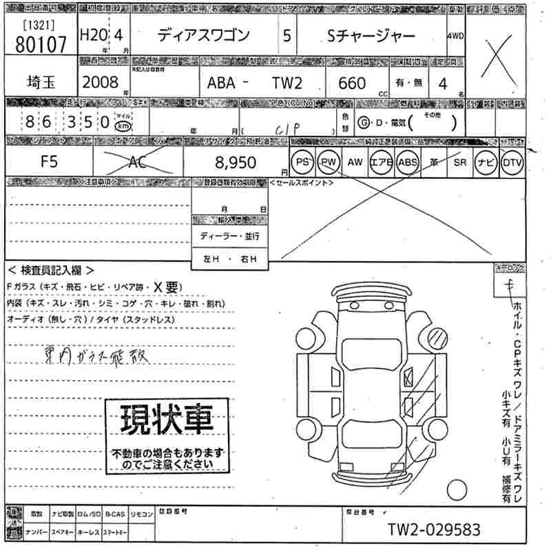 SUBARU DIAS WAGON 2008 г., лот № 80107