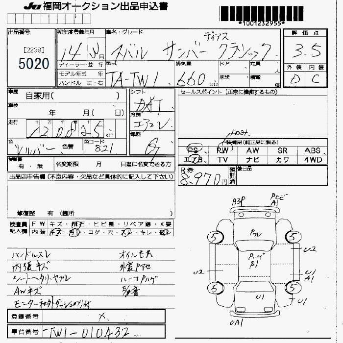 Статус выставлен на аукцион Лот 5020 Аукцион JU Fukuoka Дата аукциона 13.03.2026