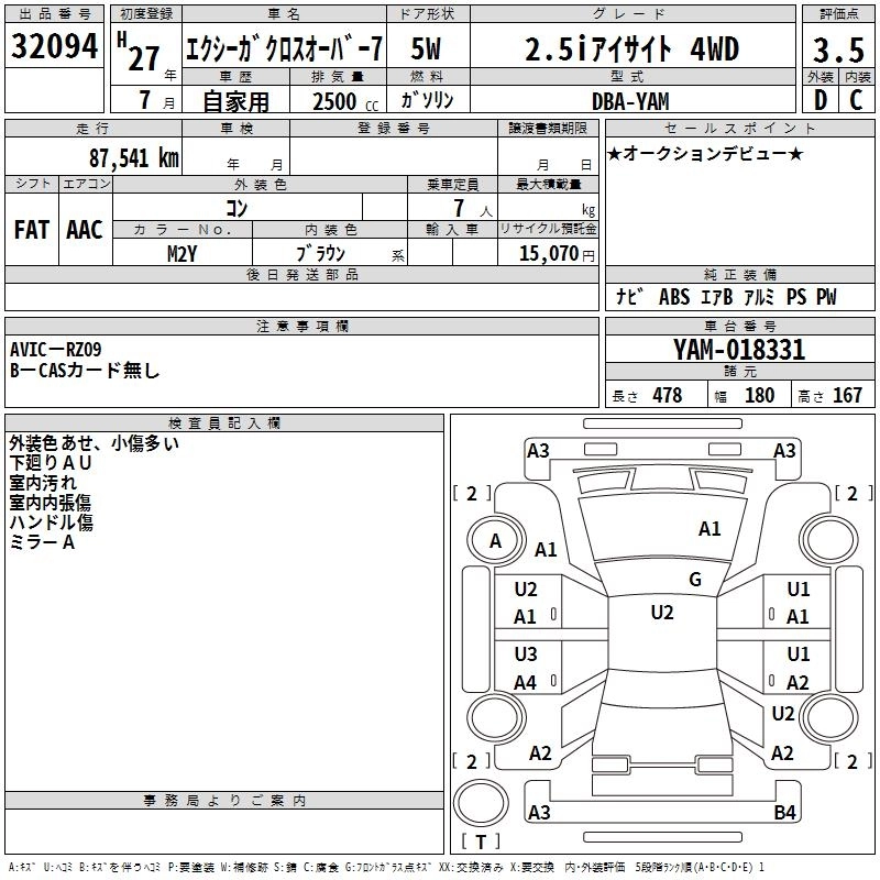 SUBARU EXIGA CROSSOVER 7 2015 г., лот № 32094