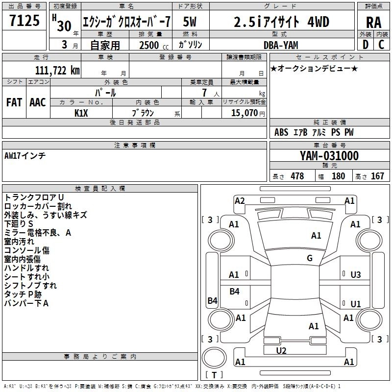 SUBARU EXIGA CROSSOVER 7 2018 г., лот № 7125