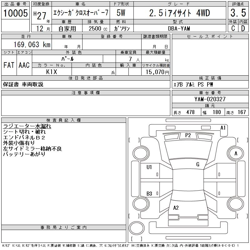 SUBARU EXIGA CROSSOVER 7 2015 г., лот № 10005