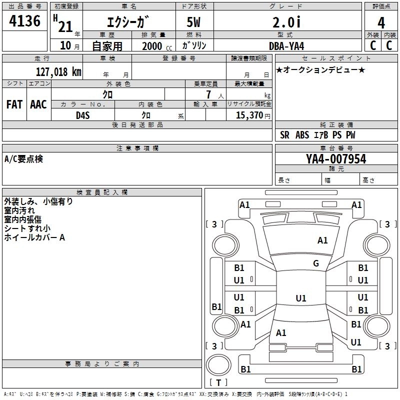 SUBARU EXIGA 2009 г., лот № 4136
