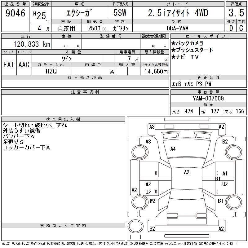 SUBARU EXIGA 2013 г., лот № 9046