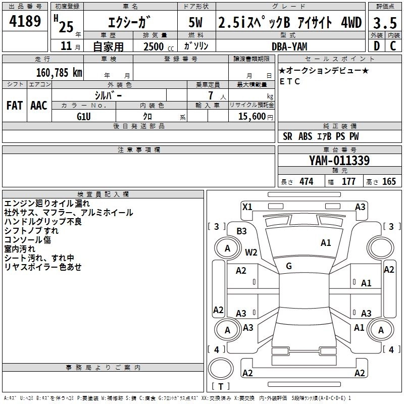 161 000 км КузовYAM Комплектация2.5I SPECIFICATIONS B EYESIGHT 4WD