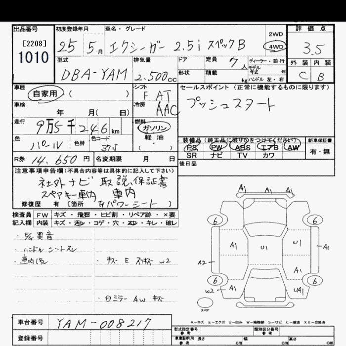 Год выпуска2013 Пробег 95 000 км КузовYAM Комплектация4WD 2.5I SPECIFICATIONS B
