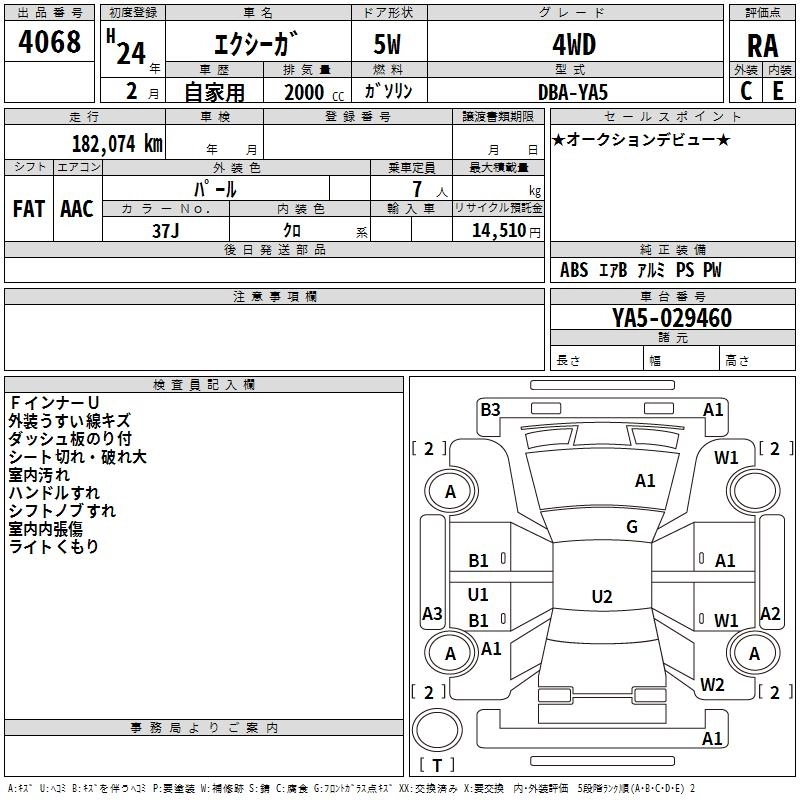 SUBARU EXIGA 2012 г., лот № 4068