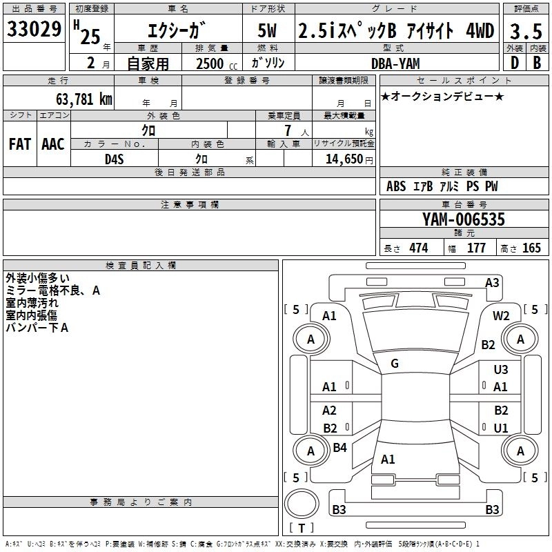 Год выпуска2013 Пробег 64 000 км КузовYAM Комплектация2.5I SPECIFICATIONS B EYESIGHT 4WD