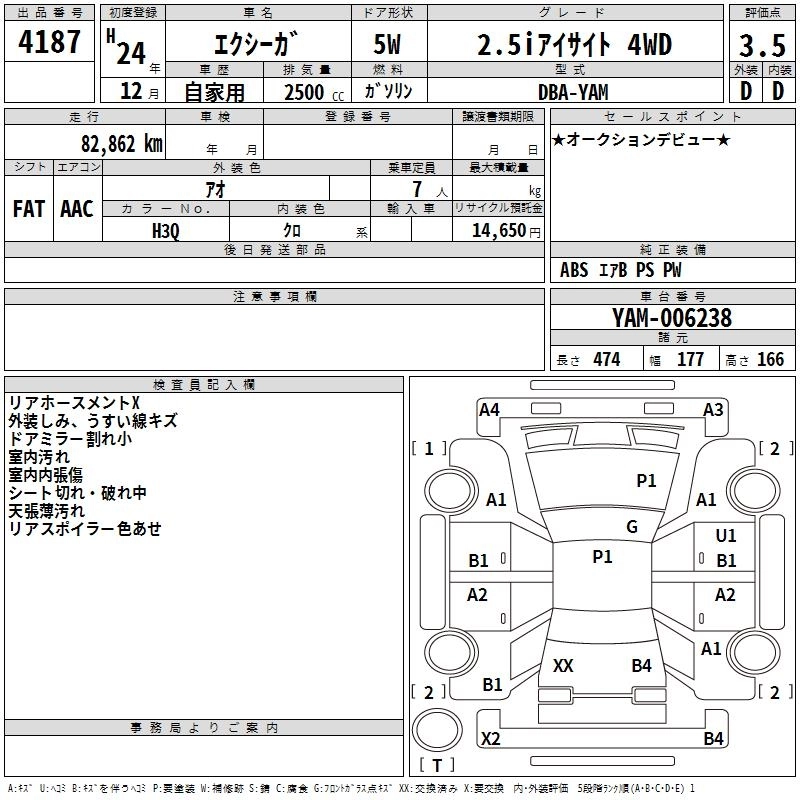 SUBARU EXIGA 2012 г., лот № 4187