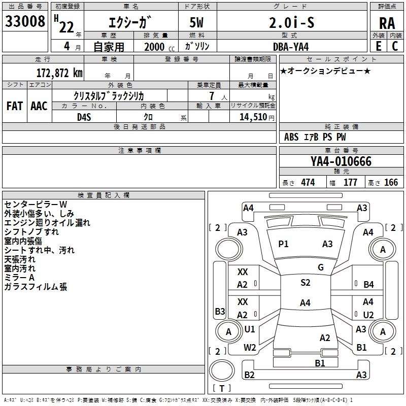 SUBARU EXIGA 2010 г., лот № 33008