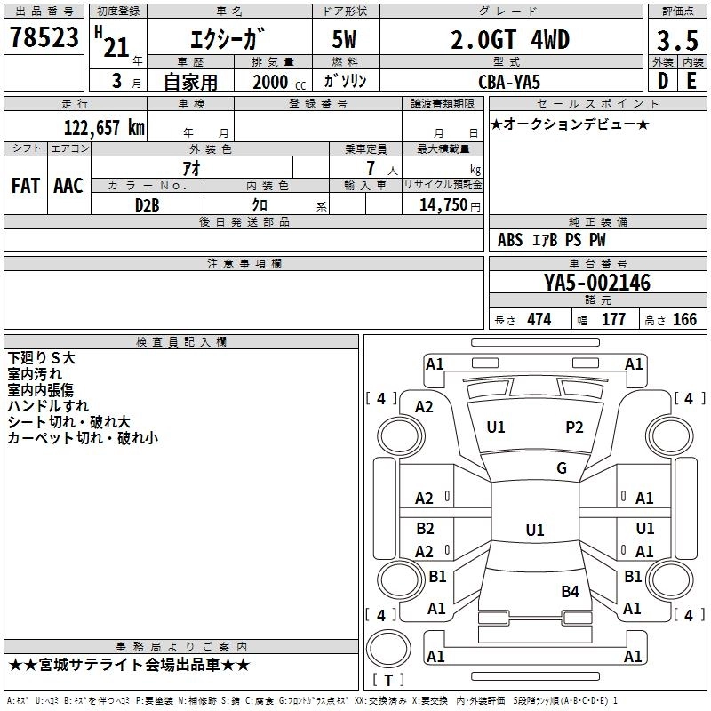 SUBARU EXIGA 2009 г., лот № 78523