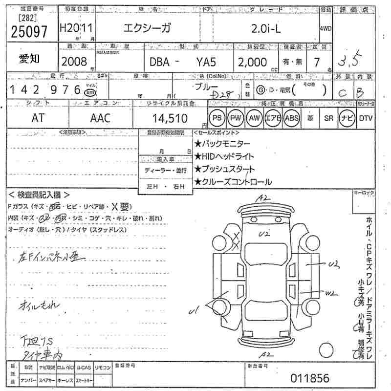 SUBARU EXIGA 2008 г., лот № 25097