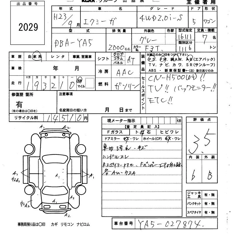 SUBARU EXIGA 2011 г., лот № 2029
