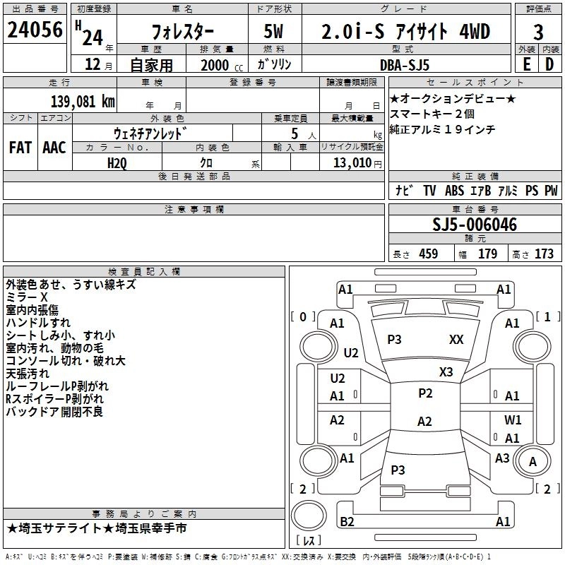 Год выпуска2012 Пробег 139 000 км КузовSJ5 Комплектация2.0I-S EYESIGHT 4WD