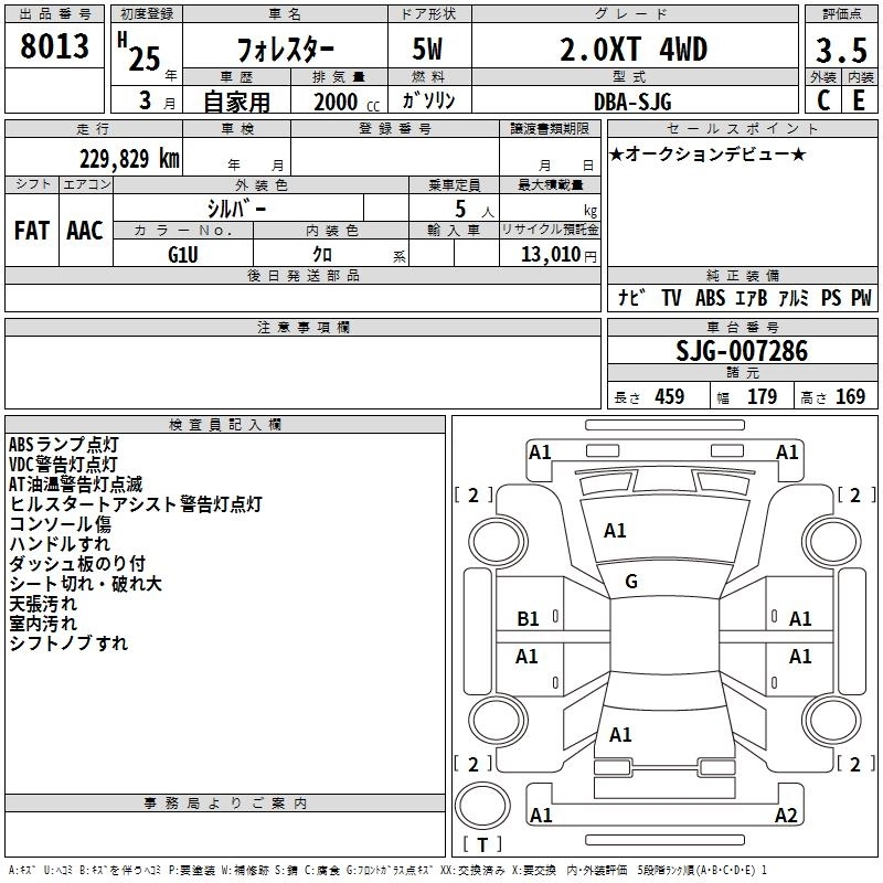 Статус выставлен на аукцион Лот 8013 Аукцион TAA Chubu Дата аукциона 23.10.2025