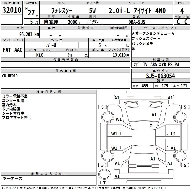 SUBARU FORESTER 2015 г., лот № 32010