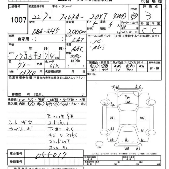 SUBARU FORESTER 2010 г., лот № 1007