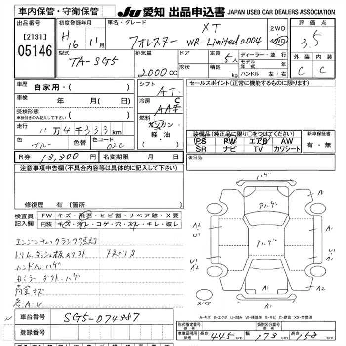 Год выпуска2004 Пробег 114 000 км КузовSG5 КомплектацияXT WR LIMITED 2004 4WD