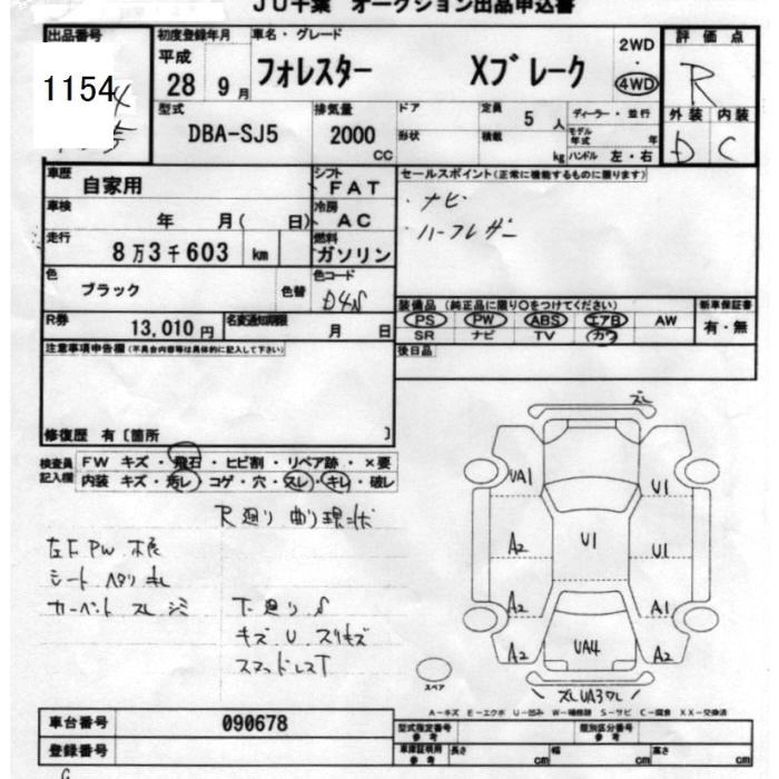 SUBARU FORESTER 2016 г., лот № 1154