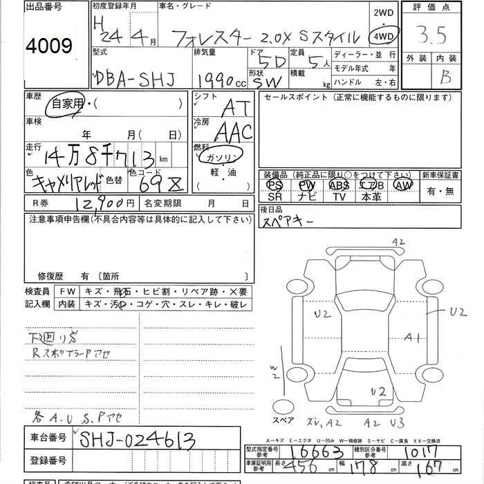 SUBARU FORESTER 2012 г., лот № 4009