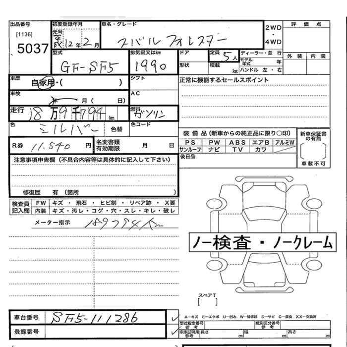 SUBARU FORESTER 2000 г., лот № 5037