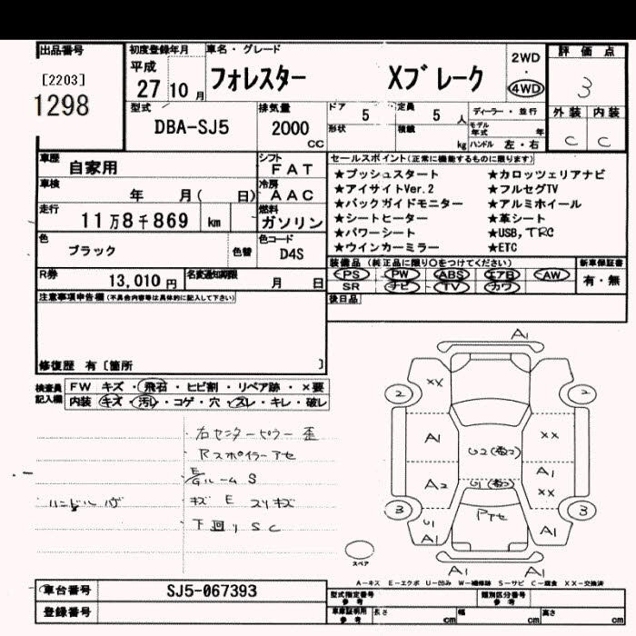 SUBARU FORESTER 2015 г., лот № 1298